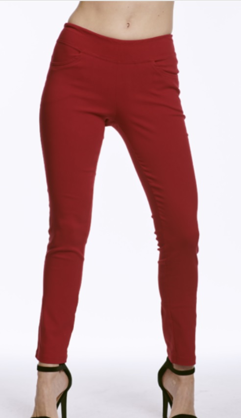 Dámské dlouhé kalhoty s kapsami vpředu a sedlem na zadním díle. Kalhoty mají zúžený střih nohavic a jsou vyrobené z pružného materiálu, který se velmi dobře přizpůsobí a drží tvar. Vhodné na běžné nošení , do práce apod.