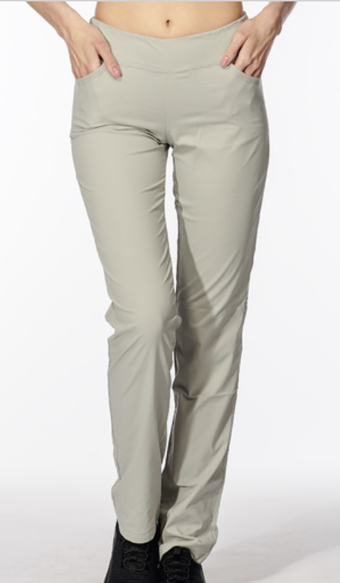 Dlouhé dámské letní kalhoty s úzkými nohavicemi a předními kapsami a sedlem na zadním díle. Kalhoty jsou vyrobené z funkčního materiálu Silver, který se jednoduše udržuje a uchovává si dokonalý tvar. Materiál je lehký , příjemný na dotek, prodyšný, rychleschnoucí a vysoce elastický.